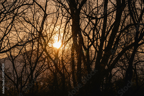 © kikisora, Obraz premium 雑木林越しのサンセット