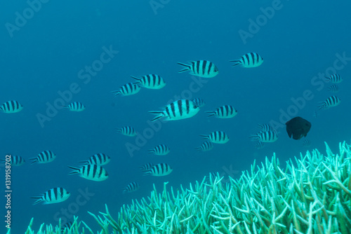 Naklejka premium ロクセンスズメダイ群れ 小笠原