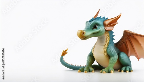 Obraz premium 날개가 달린 작은 드래곤 캐릭터가 귀엽게 앉아 있는 디자인