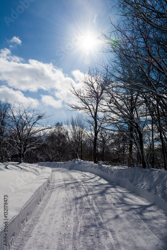 © kinpouge, Obraz premium 冬の太陽と雪道