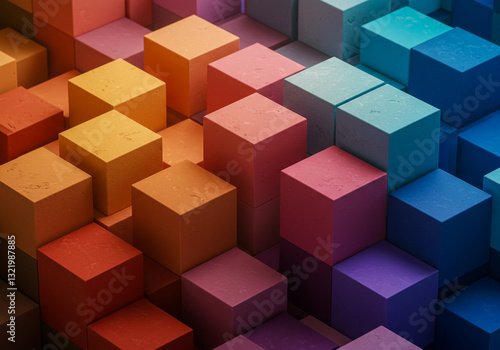 © hiro, Obraz premium 背景素材 カラフルキューブ
