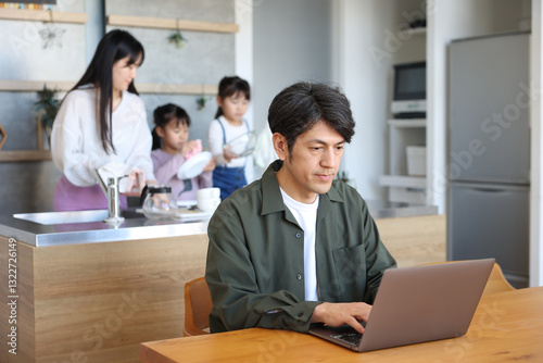 © TAGSTOCK2, Obraz premium リビングで仕事をする男性