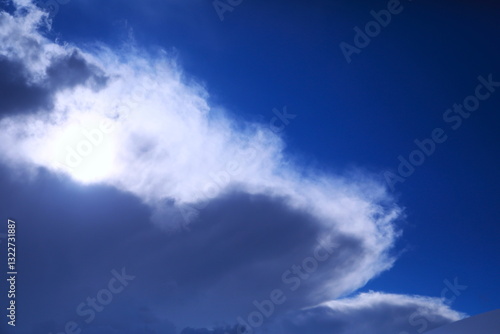 © 写真小僧, Fototapeta premium 太陽光に浮かび上がる黒い雲と透き通るような白い雲