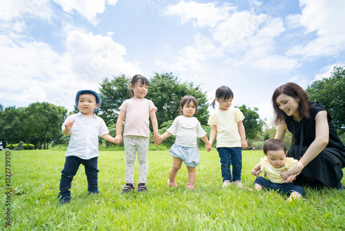 © TAGSTOCK2, Obraz premium 青空の下、元気に走る子供たち