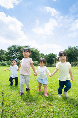 © TAGSTOCK2, Obraz premium 青空の下、元気に走る子供たち