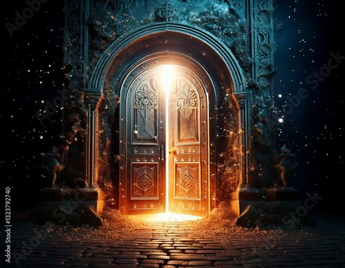Fototapeta premium ドア 扉 ファンタジー イラスト 光