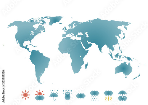 Obraz premium 世界地図と天気記号アイコンのイラスト