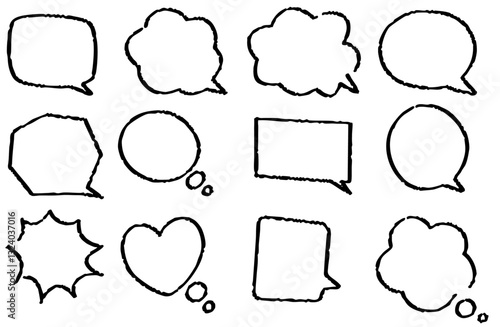 Fototapeta premium レトロでかわいい手書き風フキダシのセット(吹き出しアイコン集)