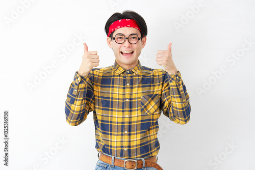 © siro46, Fototapeta premium アキバ系の男性 グッドサイン 白背景