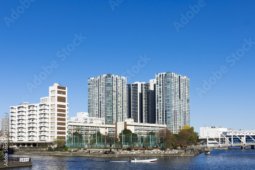 Fototapeta premium 東京都市風景 天王洲アイル タワーマンション群 運河 快晴 青空