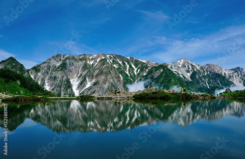 Obraz premium 長野県白馬村 夏山 八方尾根登山 白馬三山と八方池