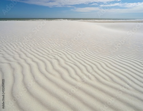 © grey, Fototapeta premium 흰 모래 위에 펼쳐진 물결 무늬.여름의 바닷가 배경.