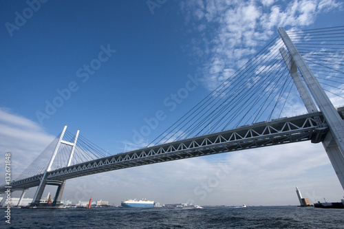 Obraz premium 横浜ベイブリッジを海上から見上げる