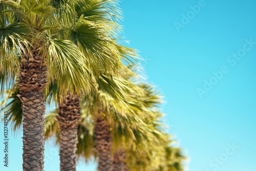 © pham, Fototapeta premium 青空の下で並ぶヤシの木とリラックスした雰囲気