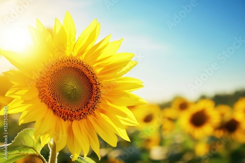 © pham, Obraz premium 明るい日差しの中で咲くひまわり畑の美しい風景