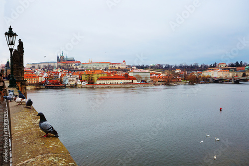 Fototapeta premium Вид на Пражский Град с собором Святого Вита и Карлов мост, Чехия