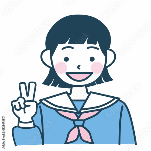 © KAZUOMI, Obraz premium 笑顔でピースする学生たちのベクターイラスト