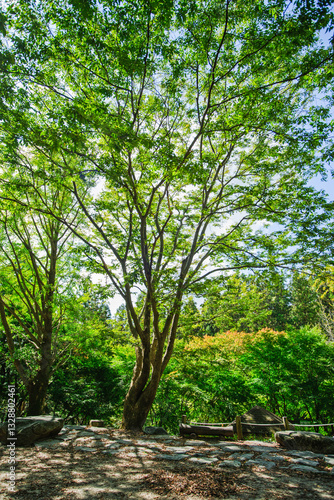 © Cokr, Obraz premium 화창한 가을날에 울창한 나무숲.