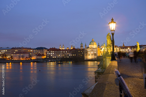 © galina_savina, Fototapeta premium Прага. Вид на ночной город с Карлова моста.