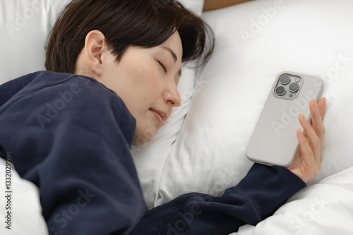 © Peak River, Fototapeta premium 女性 スマホ 寝落ち