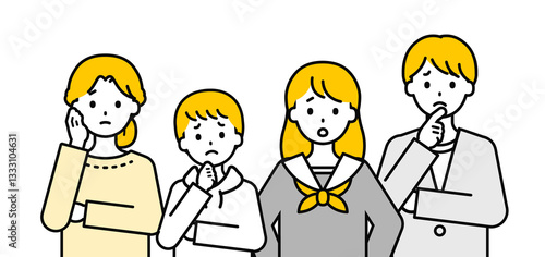 © Yuwaii design, Naklejka premium 上半身のポーズセット_ネガティブな「ファミリー」のセット