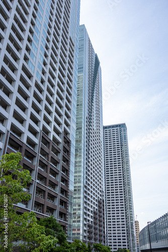 © ToYoPHoTo, Obraz premium 青空にそびえ立つ都会の高層マンション群