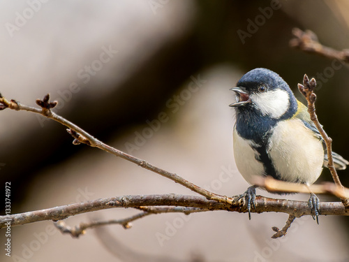 © ichihira, Fototapeta premium 枝にとまるシジュウカラ