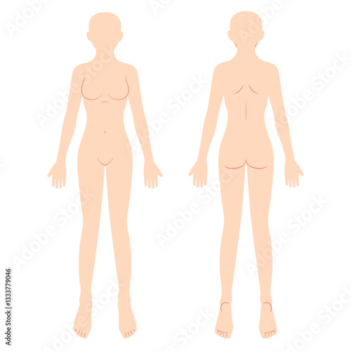 © nem, Fototapeta premium 女性の人体図 シェーマ 前面背面