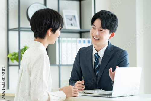 © pain au chocolat, Obraz premium 若い女性に提案するビジネスマン
