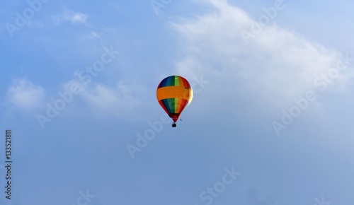 Fototapeta premium Радужный воздушный шар в небе, воздухоплавание.