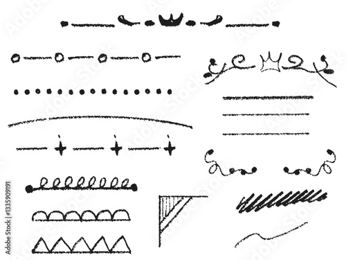 Obraz premium 鉛筆で書いたラフな飾り罫のイラスト素材。手描きの温かみがあるシンプルデザイン