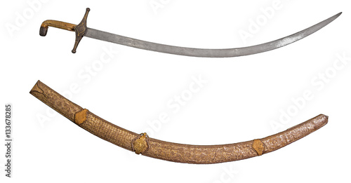 Obraz premium Меч и ножны древних на изолированный белый фон