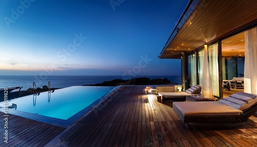 Fototapeta premium 탁 트인 오션뷰를 감상할 수 있는 현대적인 풀빌라