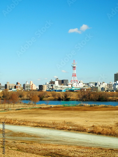 © smtd3, Obraz premium 冬枯れの河川敷風景