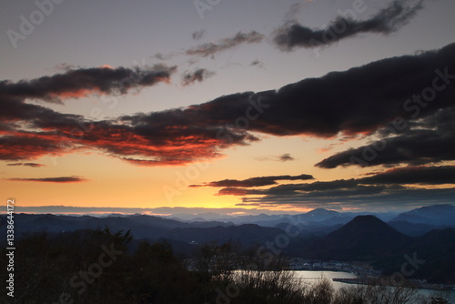 © 博一 玉田, Obraz premium 冬の夕焼けに染まる舞鶴