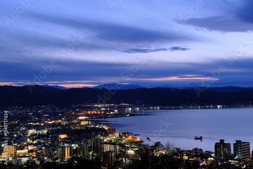 © Tsubasa005, Obraz premium 立石公園から見た諏訪湖の夜景