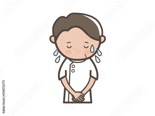 © shunpang, Obraz premium 冷や汗をかいて謝る男性整体師(マッサージ師)の上半身イラスト