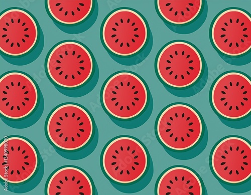 © nagi, Fototapeta premium 切ったスイカの種がぽつぽつした壁紙