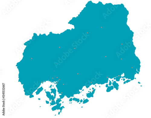 Obraz premium 広島県 地図 グリーン 斑点 イラスト