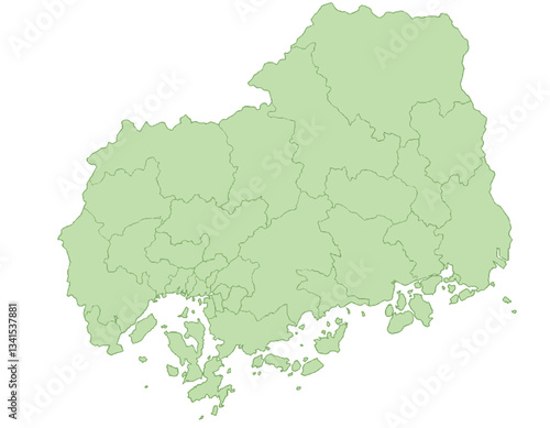Obraz premium 広島県 地図 黄緑 イラスト