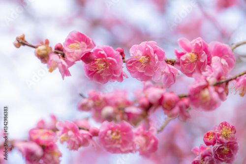 © kai, Obraz premium 雨に濡れる梅園の美しい梅の花