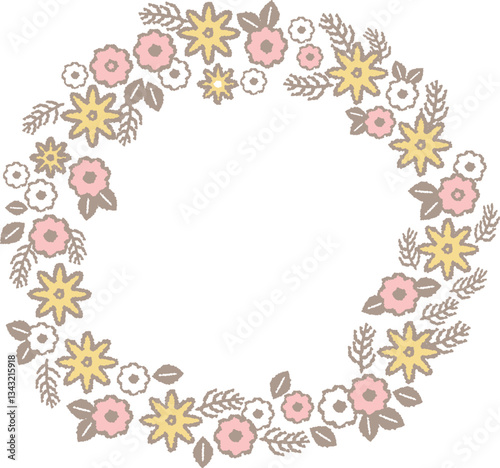 © Dahlia, Obraz premium 花のリースの装飾枠のカラーイラスト