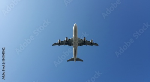© Heini, Fototapeta premium 青空高く、静かに上昇する旅客機。爽快な構図。