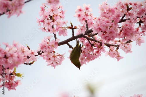 © yichi2005, Obraz premium 春の河津桜とメジロ