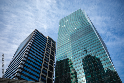© garcon daily photo, Obraz premium 青空にそびえる高層ビルの風景