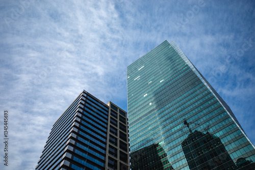 © garcon daily photo, Obraz premium 青空にそびえる高層ビルの風景