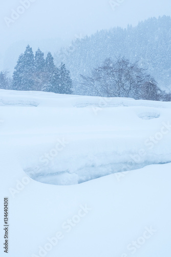 Obraz premium 雪が積もった氷ノ山の棚田の風景 鳥取県 氷ノ山