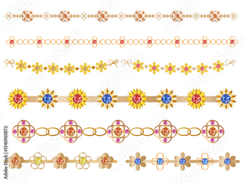 Fototapeta premium ジュエルライン■花のモチーフのラインセット・ゴールド