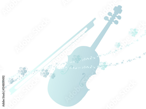 © rinm, Obraz premium 青いバイオリンと花のイラスト