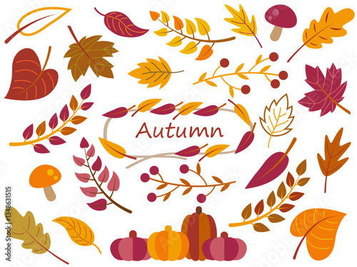 Obraz premium 植物■秋の葉のイラストセット■グリーンリーフ